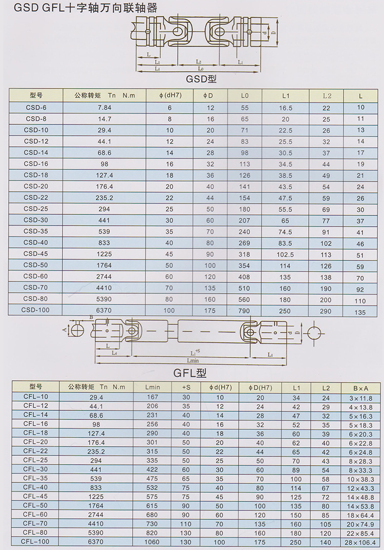轻系列 万向联轴器 十字轴式 LQA型 GSD型 GFL型