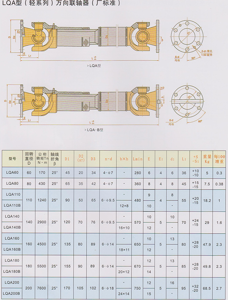 轻系列 万向联轴器 十字轴式 LQA型 GSD型 GFL型